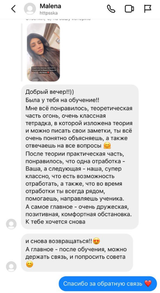 - Чат со мной и мастерами, где всегда можно получить обратную связь;