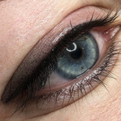 Выполняем межресничку, стрелки и растушёвку — подбираем технику под форму глаз. Держится до 2 лет.